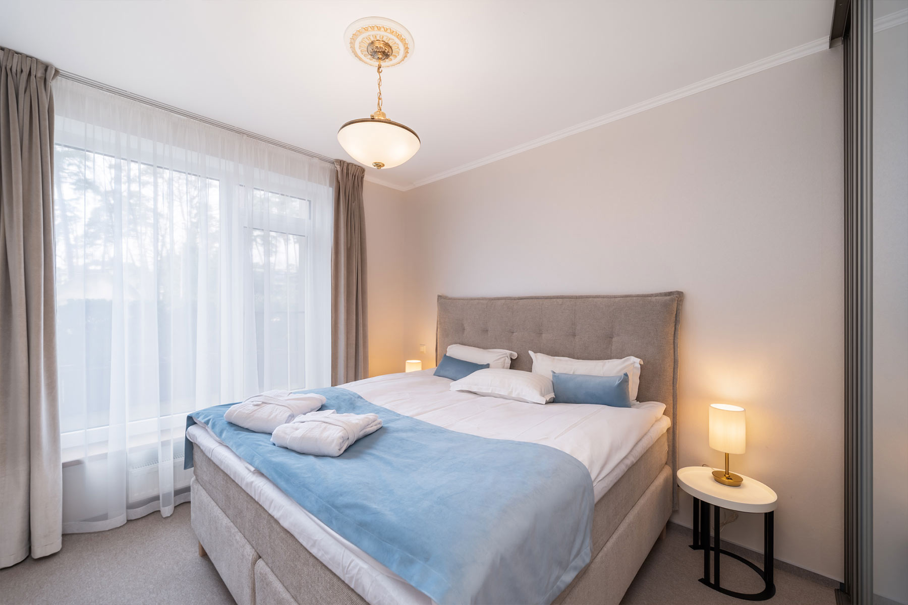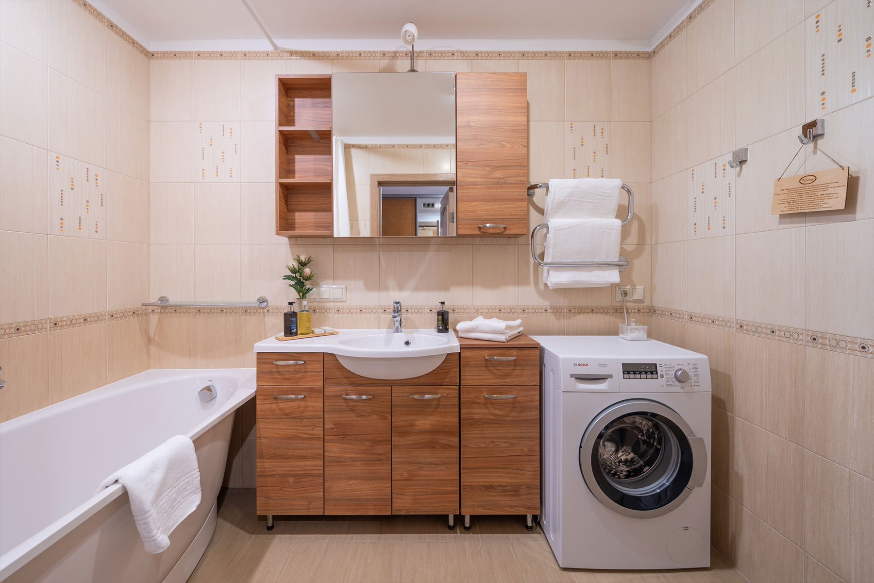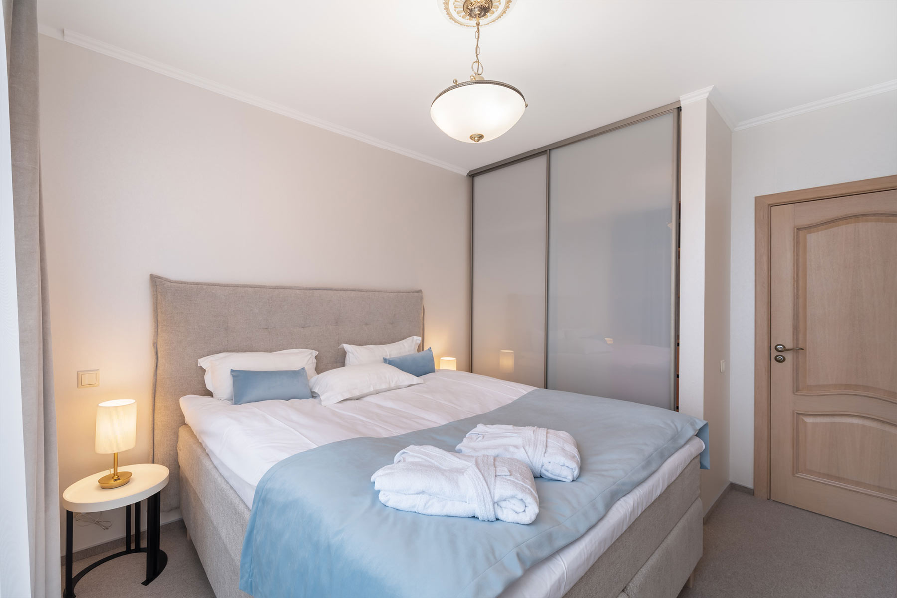 Šo apartamentu galvenā atšķirība — katrai guļamistabai ir sava vannas istaba (duša vai vanna).