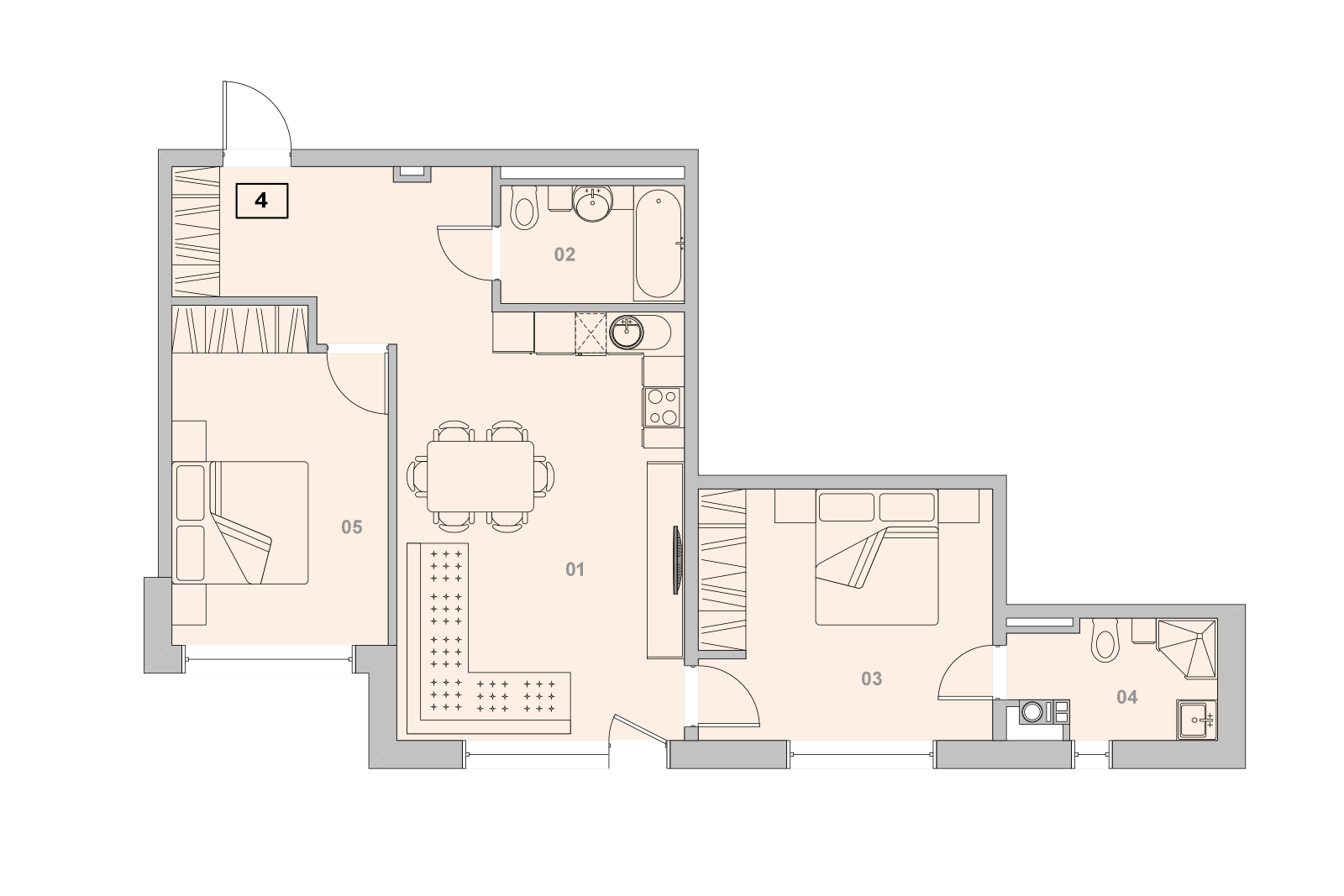 The main difference and convenience of this apartment is its own bathroom for each bedroom (shower or bathroom).
